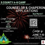 5 County 4-H Camp Counselor/Chaperone Applications due March 1