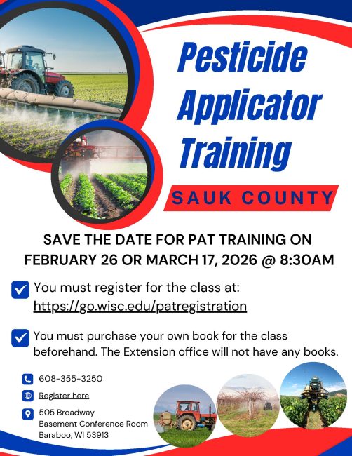 Location: Sauk County Extension Office, 505 Broadway, Basement Conference Room, Baraboo, WI 53913. 608-355-3250.